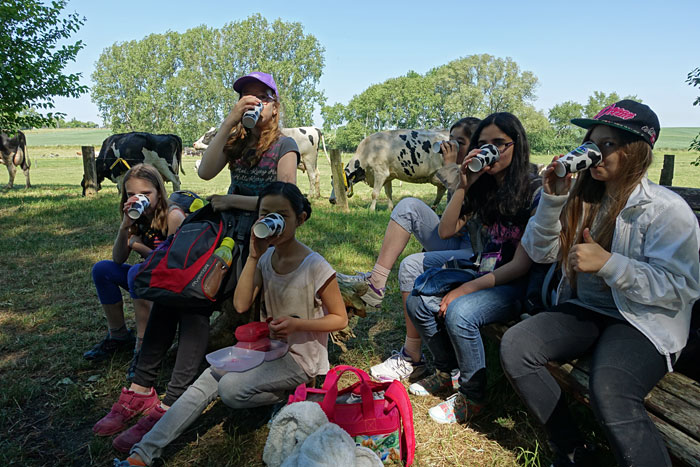 Anschließend können sie die Milch oder den Kakao der hauseigenen Molkerei verkosten!
