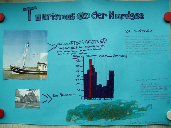 „In Geographie lernt ihr die Welt kennen. Die ersten Themen handeln von Deutschland. Unsere Klasse hat gerade Tourismus in Deutschland. Wir haben schon die Nordsee, Ostsee und Gebirge behandelt.“